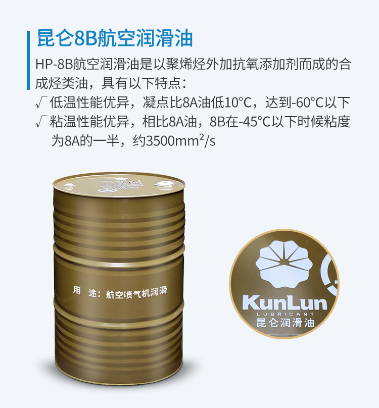 8B航空潤滑油是以聚烯烴外加抗氧添加劑而成的合成烴類油,具有以下特點: