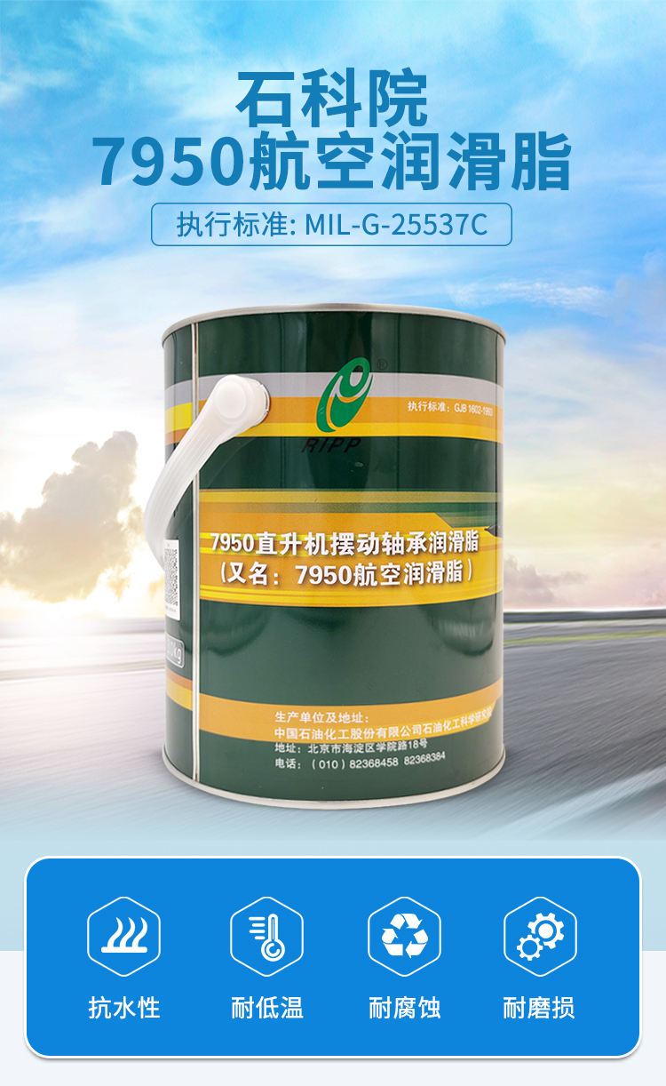 7950航空機輪潤滑脂 適用于直升機自動傾斜儀大滾珠軸承, 適用于小幅度擺動軸承、大滾珠軸承等部位的潤滑,使用溫度-60℃~71℃,