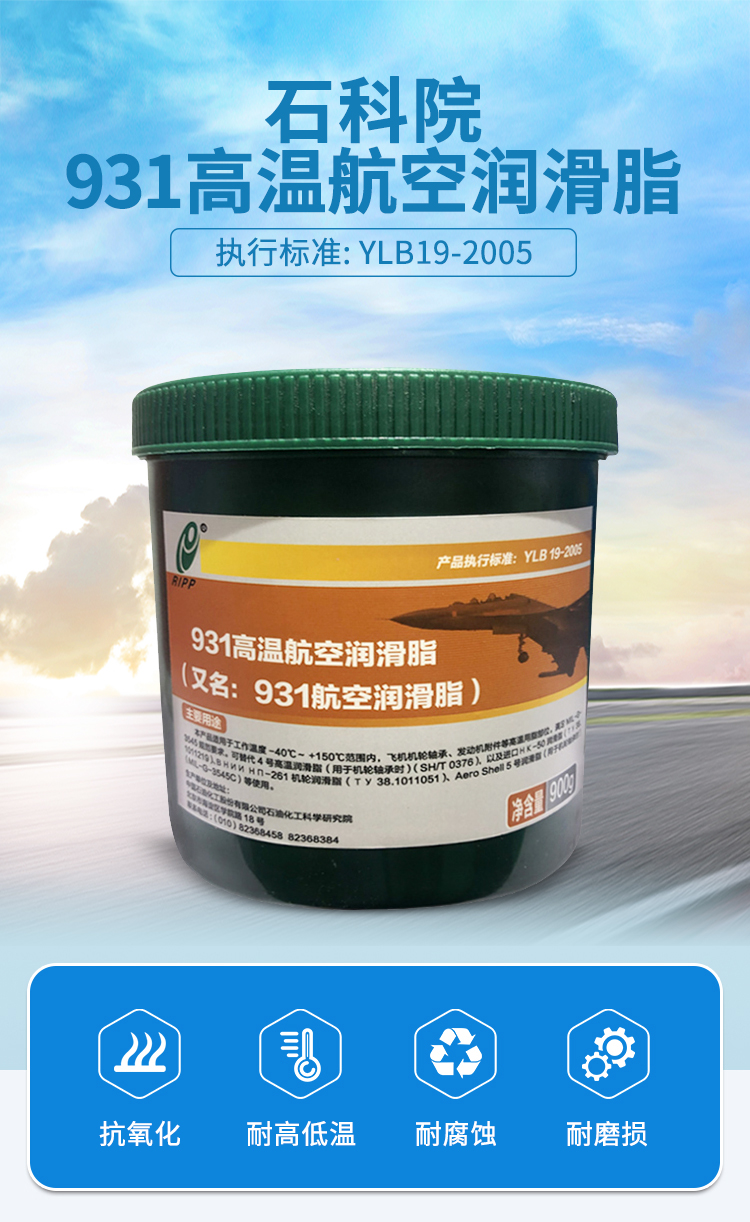 931高溫航空潤滑脂適用于高溫條件下的機輪軸承、發動機附件及其他高溫部位的潤滑和密封,使用溫度為-40℃~150℃。
