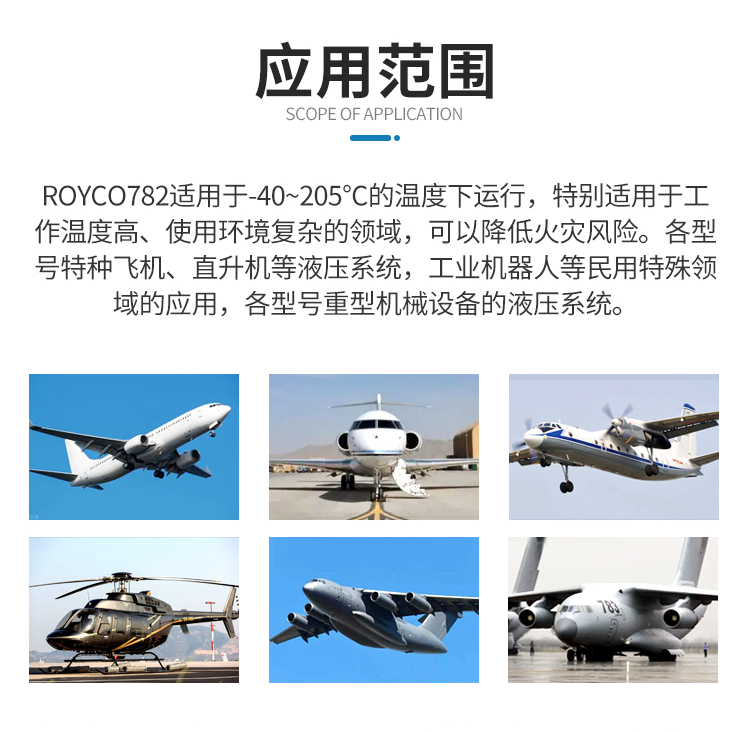 ROYCO 782耐燃航空液壓油用途: