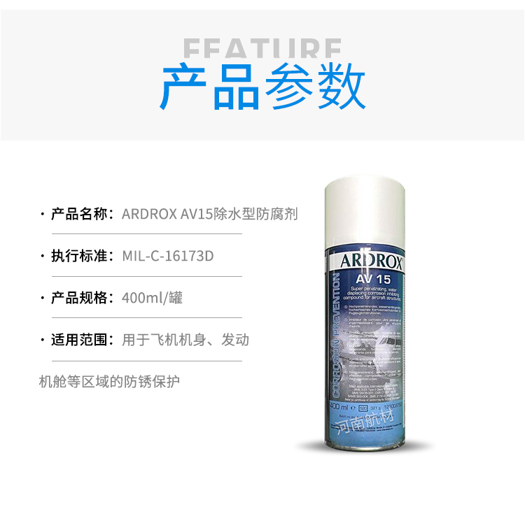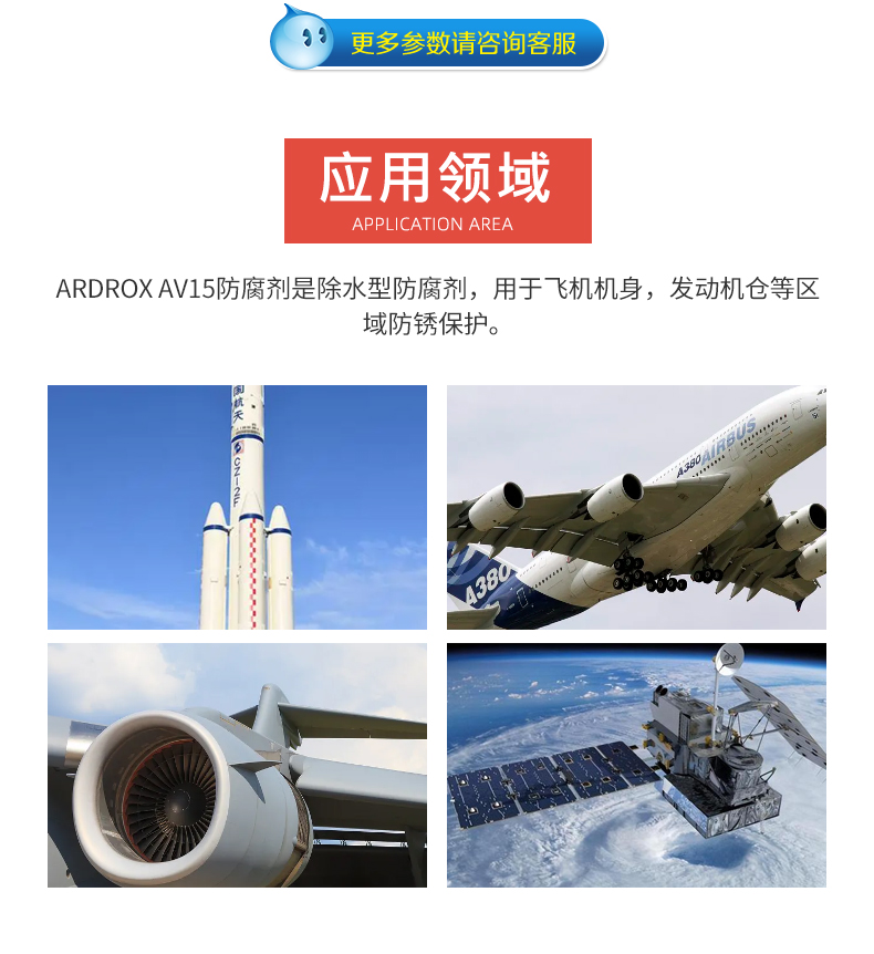 ARDROX AV15防腐劑是除水型防腐劑,用于飛機(jī)機(jī)身,發(fā)動(dòng)機(jī)倉(cāng)等區(qū)域防銹保護(hù)。