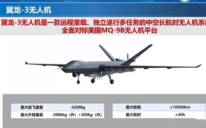既有對(duì)地、對(duì)空的察打一體無(wú)人機(jī)——翼龍-3、彩虹-7,又有海上察打一體無(wú)人機(jī)——彩虹5(類(lèi)似美國(guó)海軍的“海上衛(wèi)士”MQ-9B),具有強(qiáng)大的反艦反潛作戰(zhàn)能力,還有中國(guó)版全球鷹——無(wú)偵-10。