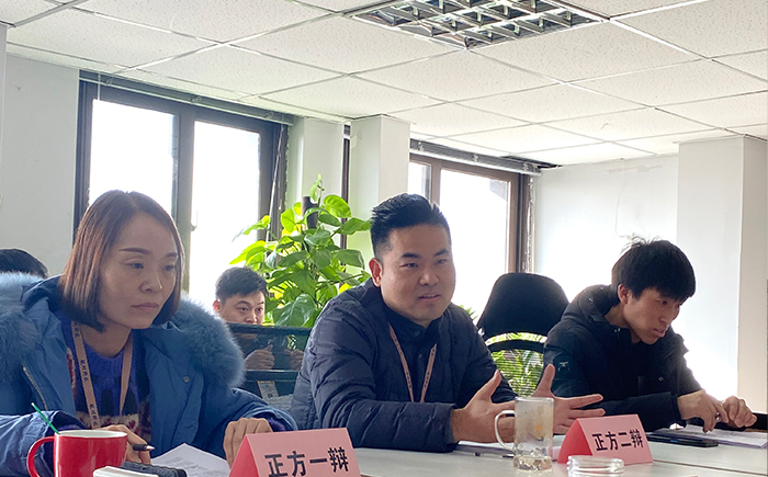 此次辯論賽分為四組,兩兩對決,勝利的隊伍參與決賽的競爭。初賽的辯論題目分別是:“正方:法大于情,反方:情大于法”以及“正方:知足長樂,反方:不知足長樂”于2023年1月7日開始,決賽的辯論題目是“正方:不以成敗論英雄、反方:英雄自以成敗論”于2023年1月11日舉辦。由宋總擔任裁判員、陳經理和文經理分別擔任觀察員,公司所有同事觀看本次辯論大賽。