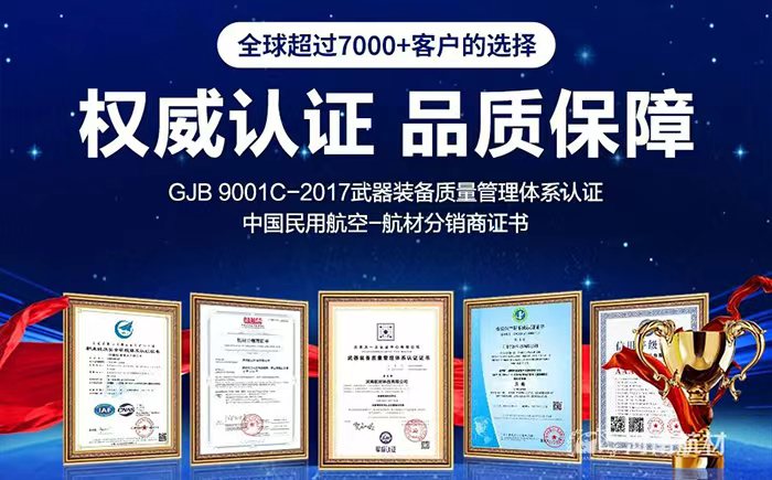 持有GJB 9001C-2017武器裝備質(zhì)量管理體系認(rèn)證;ISO 9001質(zhì)量管理體系認(rèn)證;民航航材分銷商認(rèn)證;職業(yè)健康安全體系認(rèn)證;環(huán)境管理體系認(rèn)證;企業(yè)信用認(rèn)證。